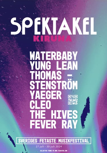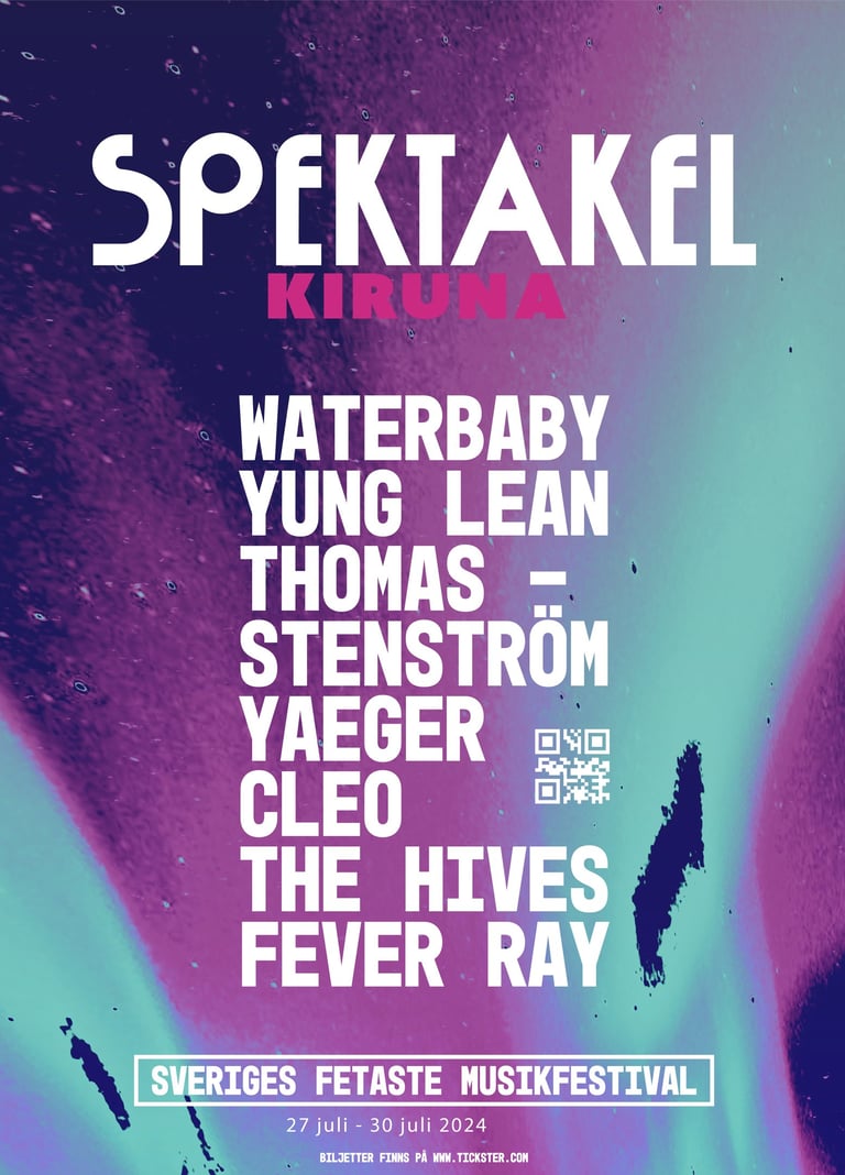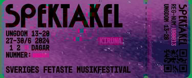 I detta projekt informerade vi uttrycket för ett potentiellt musik-event i Kiruna. Vi döpte det till "SPEKTAKEL", valde färger, typsnitt, tillverkade bakgrunder och sammansatte grafiskt material. Eventet genomfördes inte.